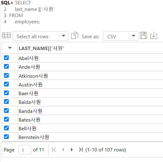 자바에서는 or 이었지만 SQL에서는 연결 연산자임!