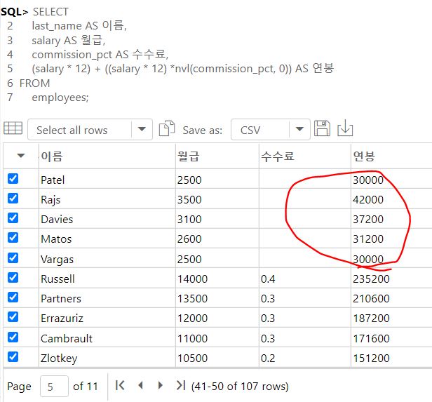 (salary * 12) + ((salary * 12) *nvl(commission_pct, 0)) AS 연봉 -> 이와 같이 함수를 사용해 해결
