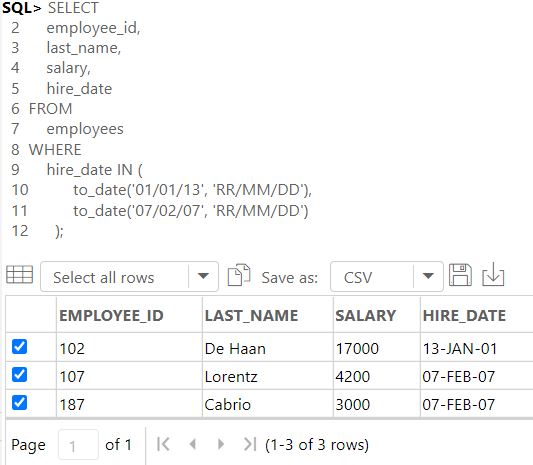 -- hire_date IN ('01/01/13', '07/02/07'); -- 집합원소유형: 날짜도 가능!