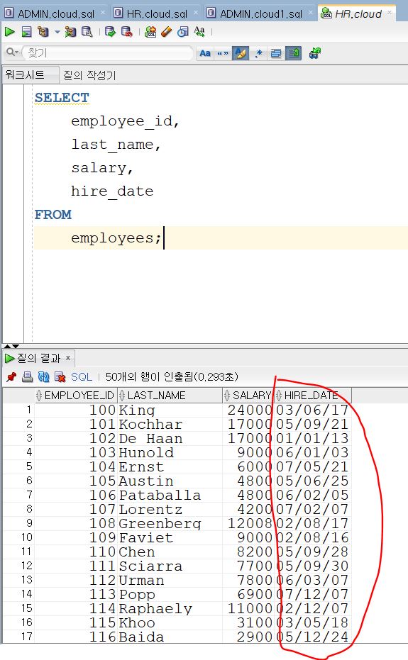 -> 개발도구마다 hire_date가 출력되는 방식이 다름!