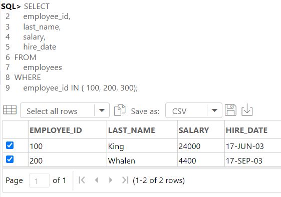 employee_id IN ( 100, 200, 300); -- 이렇게 쓰자! -- 집합원소유형 : 숫자도 가능