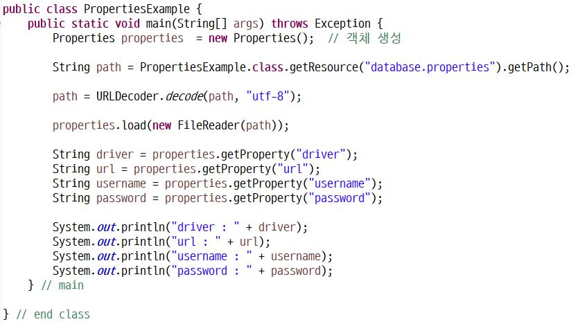 Properties는 프로퍼티(~.properties) 파일을 읽어 들일 때 주로 사용