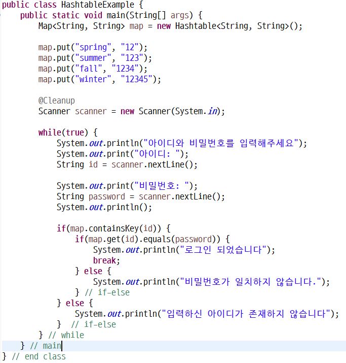 복수의 스레드가 동시에 Hashtable에 접근해서 객체를 추가, 삭제하더라도 스레드에 안전(thread safe)