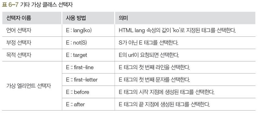 웹 문서에는 보이지 않지만 동작에 영향을 주는 속성을 가상 선택자로 이용