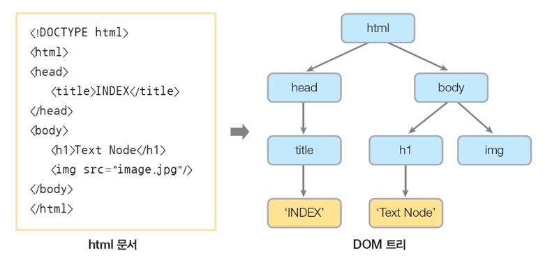 변환된 트리 구조를 이용하면 자바스크립트로 웹 문서를 조작할 수 있음