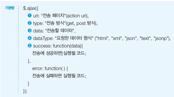 $.ajax({ // jQuery 라이브러리의 Ajax 핵심구현 메소드