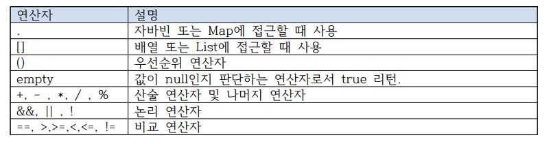 일반적인 프로그램 언어처럼 연산자도 제공된다. 다음은 EL표기법에서 사용 가능한 연산자 목록이다